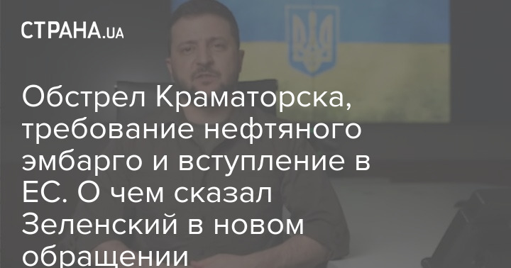 Обстрел Краматорска, требование нефтяного эмбарго и вступление в ЕС. О чем сказал Зеленский в новом обращении