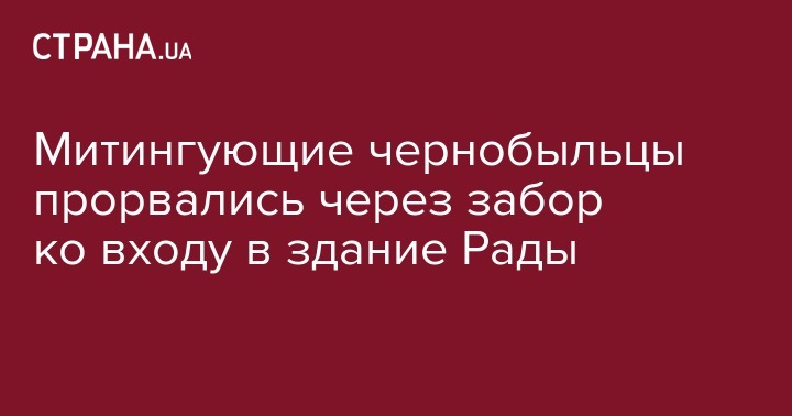 Митингующие чернобыльцы прорвались через забор ко входу в здание Рады