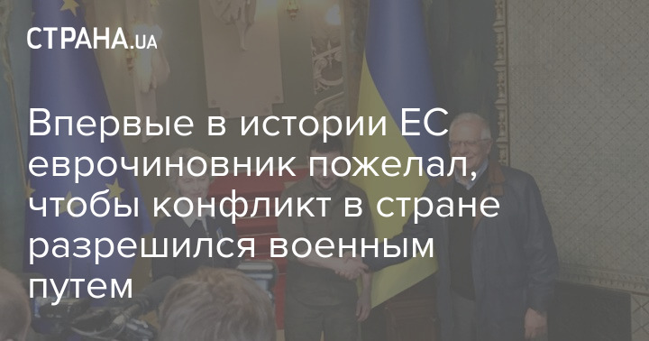 Глава дипломатии Евросоюза Жозеп Боррель по следам своего визита в Киев написал пост в соцсети, в котором впервые в истории сообщества пожелал, чтобы конфликт был разрешен военным путем.