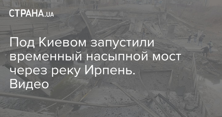 В Романовке под Киевом возвели временный насыпной мост рядом с разрушенным на второй день войны автомобильным мостом через реку Ирпень.