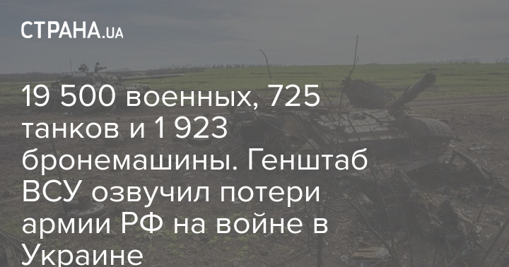 19 500 военных, 725 танков и 1 923 бронемашины. Генштаб ВСУ озвучил потери армии РФ на войне в Украине