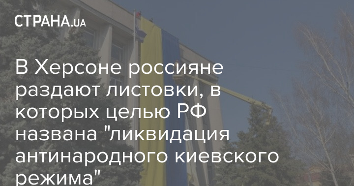 Главное управление разведки Министерства обороны Украины публикует листовки, которые россияне распространяют по Херсонской области. В качестве основного лейтмотива, как отмечает ГУР, указывается, что целью действий России является не Донбасс, а "ликвидация антинародного киевского режима". То есть - захват всей Украины.