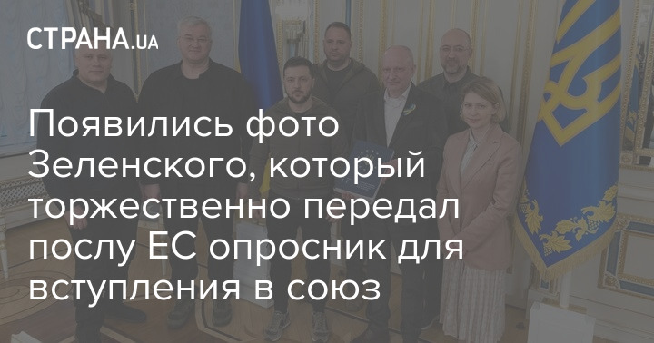 Появились фото Зеленского, который торжественно передал послу ЕС опросник для вступления в союз
