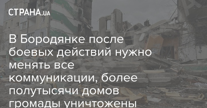 Исполняющий обязанности председателя Бородянского горсовета Георгий Ерко сообщил "Стране", что в городе после боевых действий нужно будет менять все коммуникации.
