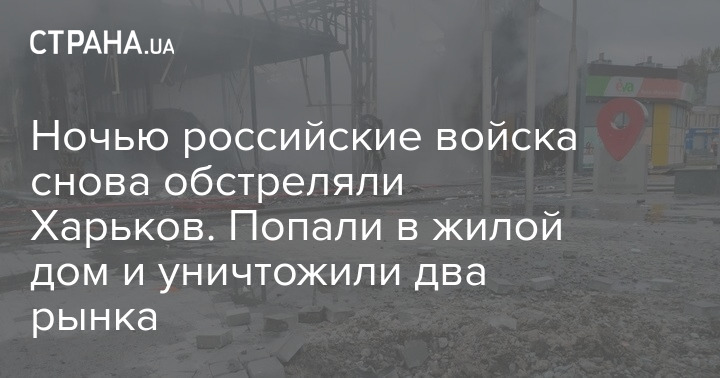 В результате российских обстрелов сегодня ночью в Харькове уничтожены два рынка. Кроме того, войска РФ попали в жилой дом.