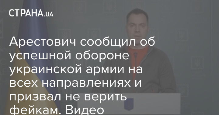 Советник главы Офиса президента Алексей Арестович рассказал об успешной обороне украинских войск на всех направлениях и призвал не верить фейкам.