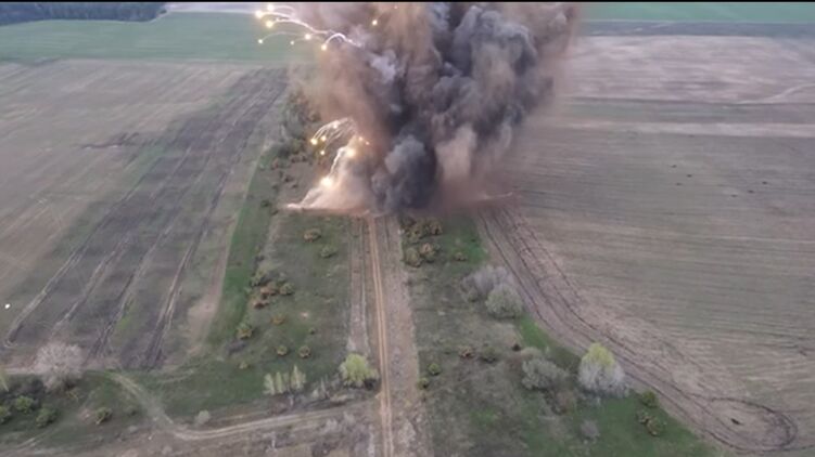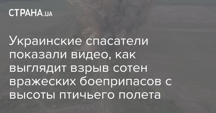 Украинские спасатели показали видео, как выглядит взрыв сотен вражеских боеприпасов с высоты птичьего полета