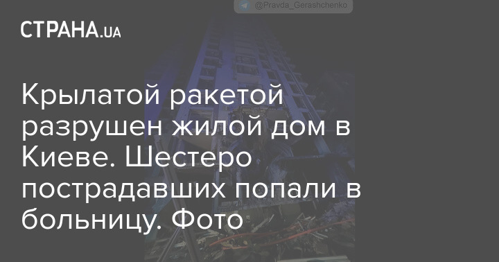 В Киеве жилой дом пострадал от обстрела. Фото: Антона Геращенко