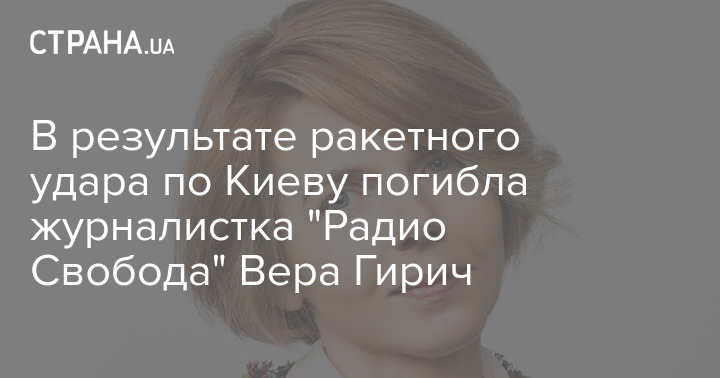 В результате ракетного удара по Киеву погибла журналистка "Радио Свобода" Вера Гирич. Российская ракета попала в ее дом.