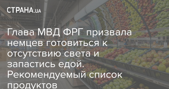 Глава МВД ФРГ призвала немцев готовиться к отсутствию света и запастись едой. Рекомендуемый список продуктов
