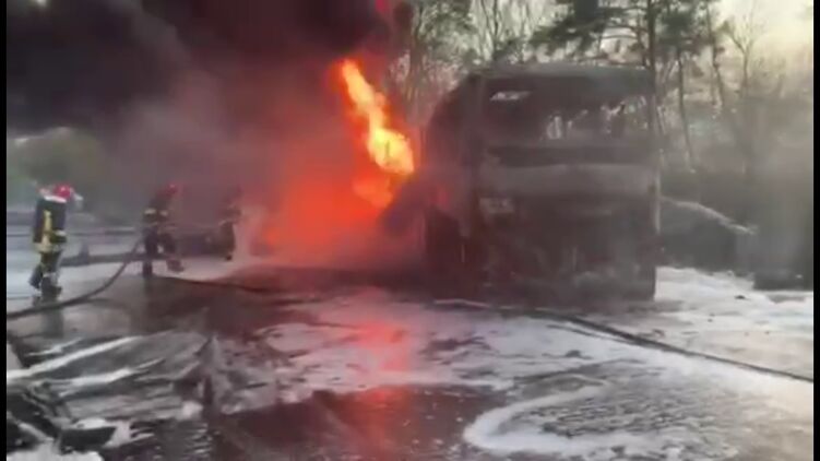 Он сообщил, что столкнулись бензовоз, микроавтобус и рейсовый автобус (вероятно, ехавший по маршруту Харьков – Згожелец).