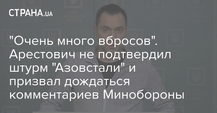 "Очень много вбросов". Арестович не подтвердил штурм "Азовстали" и призвал дождаться комментариев Минобороны