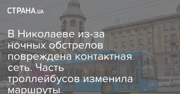 Из-за ночного обстрела Николаева в городе была повреждена контактная сеть, сегодня из-за этого некоторые троллейбусы будут ходить по измененному маршруту.