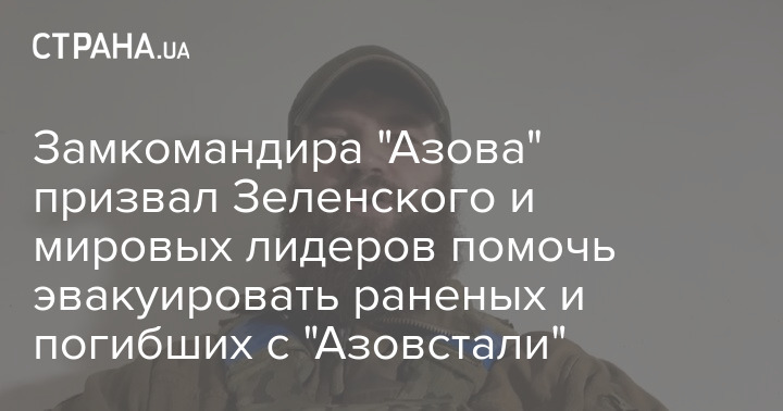 "Призываем мировое сообщество эвакуировать гражданских, и лично обращаюсь к Верховному Главнокомандующему позаботиться о раненых солдатах, которые в страшных муках умирают от ненадлежащего лечения. Дайте возможность унести тела воинов, чтобы украинцы смогли попрощаться со своими героями", - заявил он.