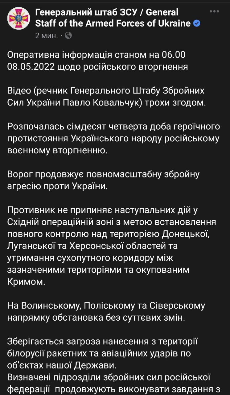 Война в Украине продолжается уже 74-й день. "Страна" следит за происходящим 8 мая в обновляемом материале.