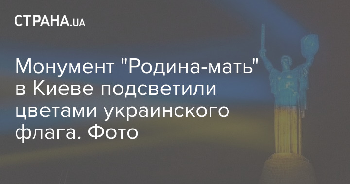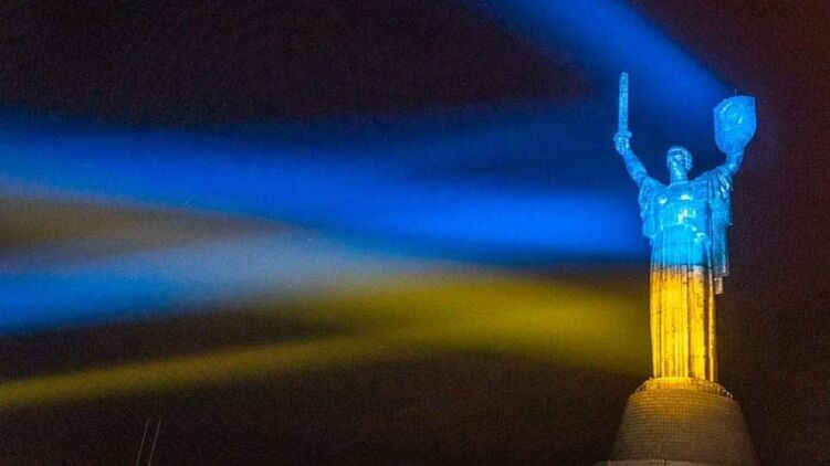 Монумент "Родина-мать" в Киеве подсветили цветами украинского флага. Фото