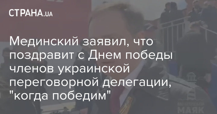 "Когда победим, тогда и поздравим", - ответил Мединский на вопрос журналистки радио "Маяк" о том, будет ли он поздравлять с Днем победы членов украинской делегации на переговорах.