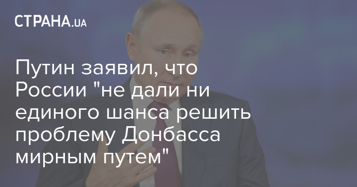 Путин заявил, что России "не дали ни единого шанса решить проблему Донбасса мирным путем"