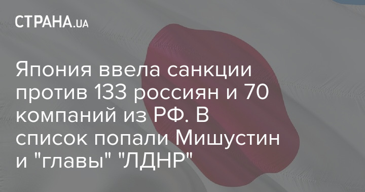 Япония ввела санкции против 133 россиян и 70 компаний из РФ. В список попали Мишустин и "главы" "ЛДНР"