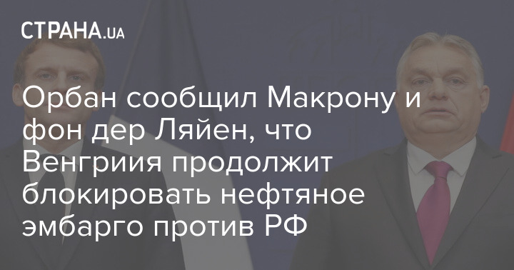 Глава МИД Венгрии после переговоров Орбана с Макроном и главой Еврокомиссии Урсулой фон дер Ляйен дал понять, что Венгрия продолжит блокировать включение нефтяного эмбарго в шестой пакет санкций против РФ.