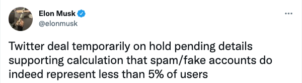 Илон Маск начал подсчет доли фейковых аккаунтов в Twitter. Ранее под этим предлогом от приостановил покупку соцсети.