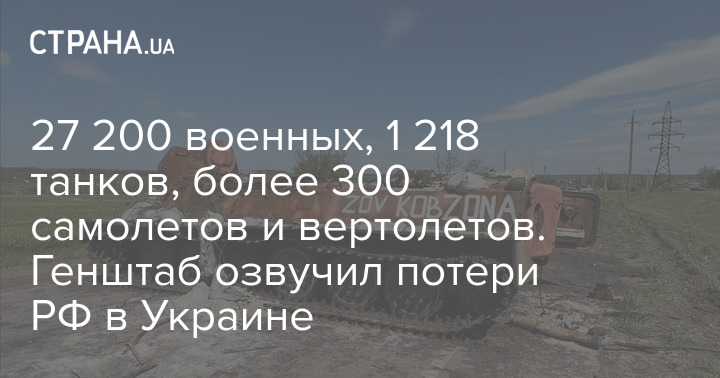27 200 военных, 1 218 танков, более 300 самолетов и вертолетов. Генштаб озвучил потери РФ в Украине