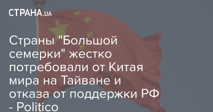 Страны "Большой семерки" жестко потребовали от Китая мира на Тайване и отказа от поддержки РФ - Politico