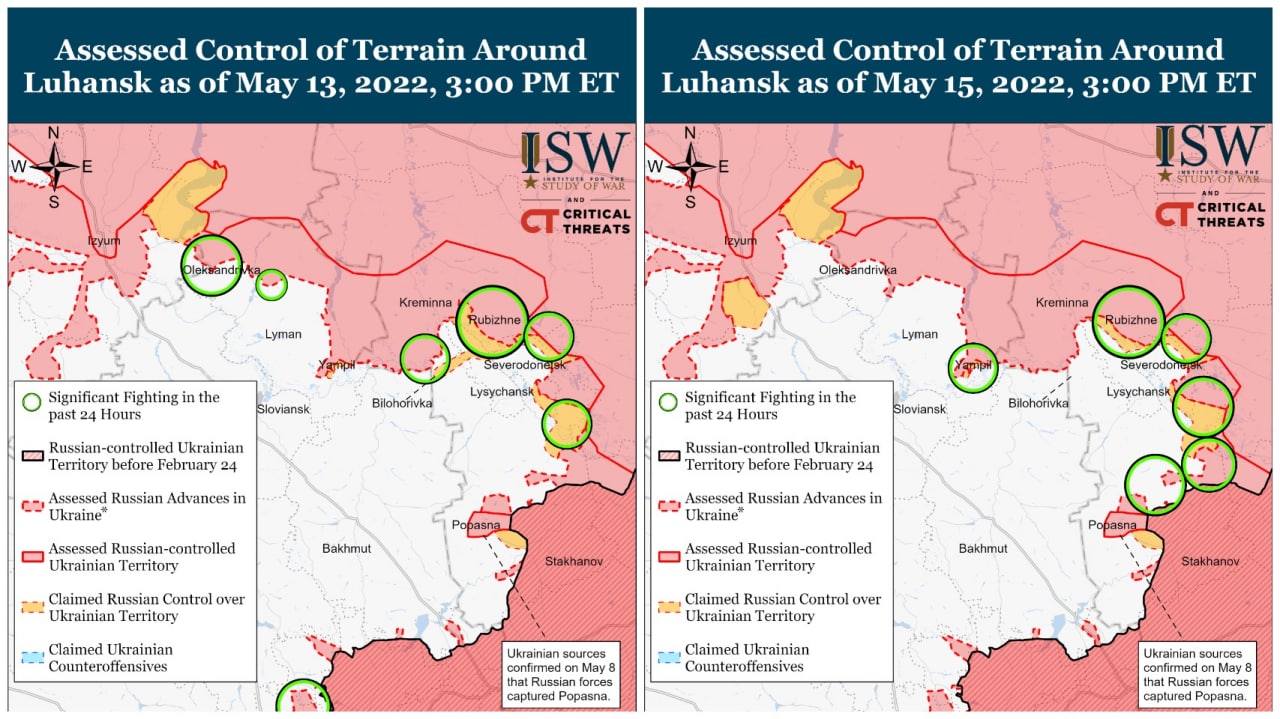 1. Россияне сейчас делают акцент на окружении Северодонецка. Достижение административных границ Донецкой области пока не продвигается.