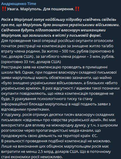Информацию о планах противника по блокированию выходов из бункеров Азовстали также подтверждает советник мэра Мариуполя Пётр Андрющенко.