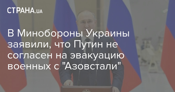В Министерстве обороны Украины заявили, что президент России Владимир Путин не дает согласия на эвакуацию военных из "Азовстали".