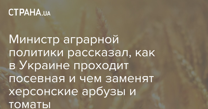 Министр аграрной политики Николай Сольский в комментарии "Стране" рассказал, как проходит посевная в Украине.
