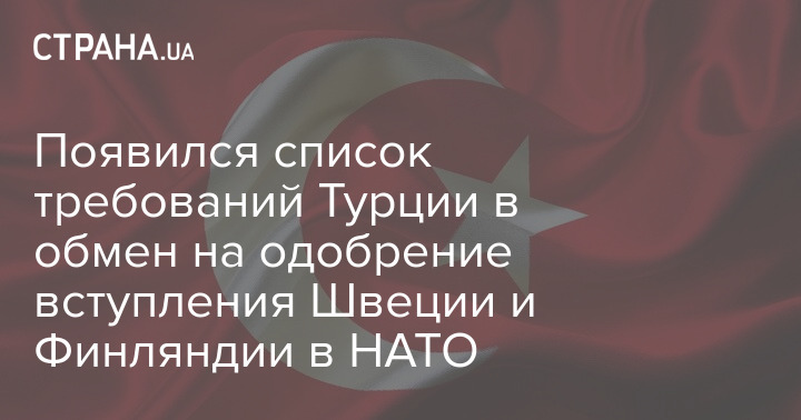 Появился перечень требовании Турции в обмен на одобрение вступления Швеции и Финляндии в НАТО.