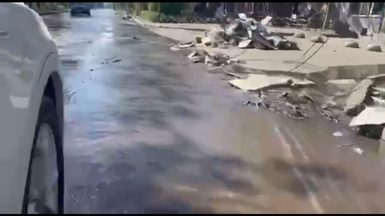 Сейчас дороги на улицах в Мариуполе превратились в реки. Это связано с тем, что в городе произошли многочисленные прорывы коммуникаций.