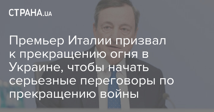 Итальянский премьер-министр Марио Драги призвал срочно прекратить огонь в Украине, чтобы можно было начать серьезные переговоры по прекращению войны, о фактическом прекращении которых на днях заявили Киев и Москва.