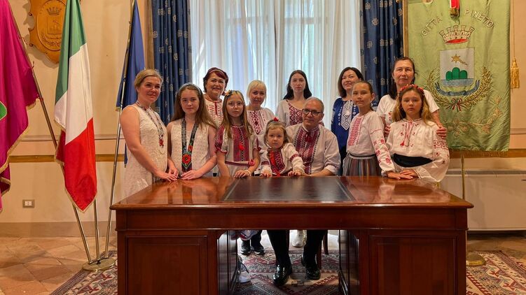 В итальянском Пинето украинцы отметили день вышиванки. На празднование пришел мэр города