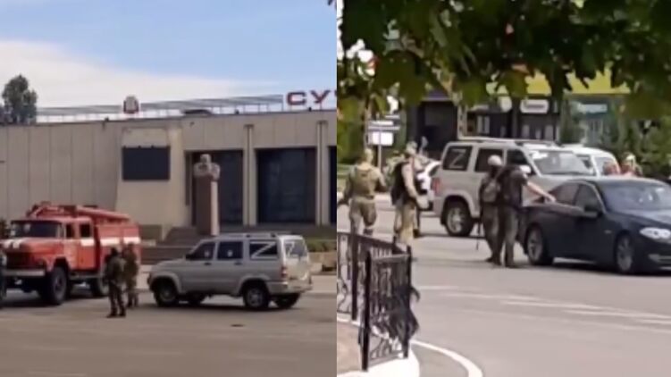 В Энергодаре Запорожской области продолжается протест пожарных, которые митингуют против ареста своего начальника Виталия Трояна. Россияне подтянули на место вооруженных людей, и начался разгон митинга.