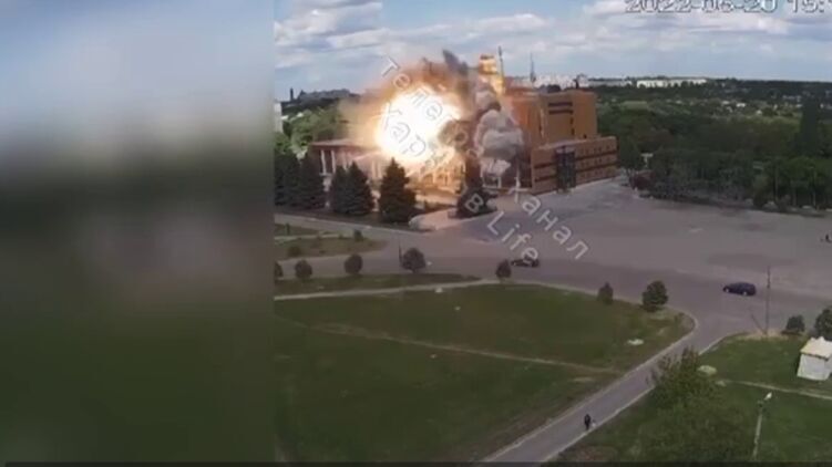 Удар по ДК в Лозовой был нанесен в пятницу около 15:00. Скриншот с видео