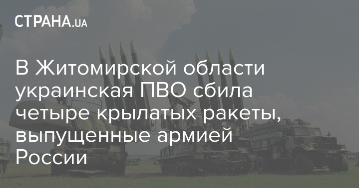 Подразделения противовоздушной обороны воздушного командования "Центр" в воскресенье уничтожили четыре крылатые ракеты, выпущенные по объектам инфраструктуры Житомирской области.