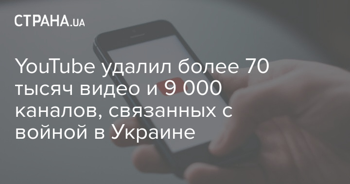YouTube за нарушение правил в отношении контента удалил более 70 000 видеороликов и 9 000 каналов, связанных с войной в Украине, где вторжение России называлось "освободительной миссией".