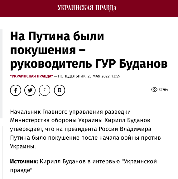 На Путина в начале войны было совершено неудачное покушение - Буданов