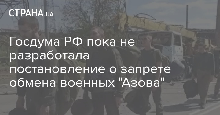 Постановление Госдумы РФ о запрете обмена украинских военных батальона "Азов" пока не разработано. Об этом сообщают "Ведомости".