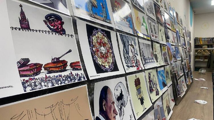 В Киеве проходит выставка карикатур о войне, на которой представлены работы 40 художников из 12 стран. Фото