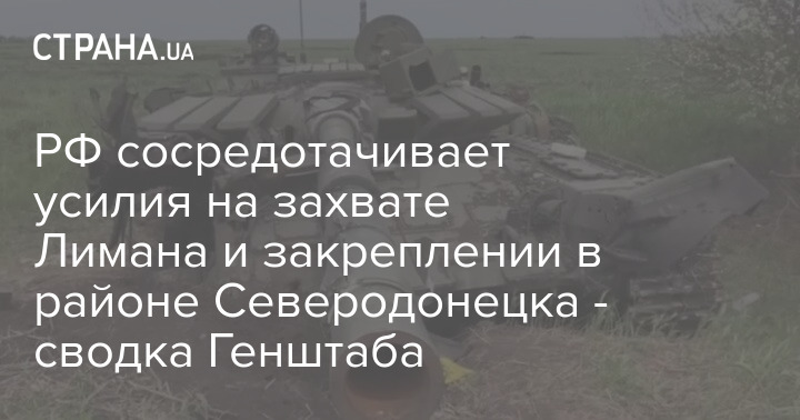 РФ сосредотачивает усилия на захвате Лимана и закреплении в районе Северодонецка - сводка Генштаба