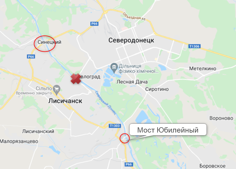 В "ЛНР" утверждают, что он вообще находится под их контролем. И сообщают, что через "Юбилейный" мост крупная военная техника передвигаться не может. Таким образом, делают вывод в "ЛНР", Северодонецк полностью отрезан. Также у противника говорят, что ведут бои на территории города.