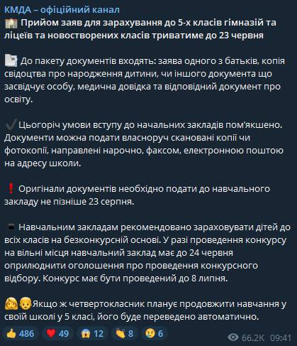 В Киеве продлили до 23 июня срок подачи заявлений для зачисления в 5-й класс гимназий, лицеев и новообразованных классов.