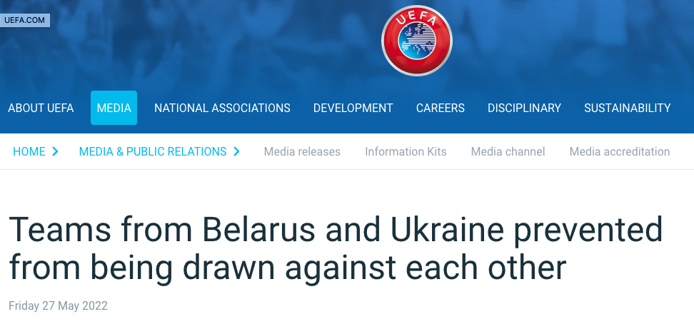 Также еще 3 марта УЕФА запретила проводить официальные международные матчи на территории Беларуси из-за содействии России в ее вторжении в Украину.