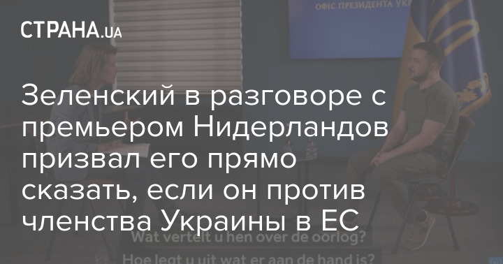 Президент Украины Владимир Зеленский в разговоре с премьер-министром Нидерландов Марком Рютте попросил того прямо сказать, если он против членства Украины в Евросоюзе.
