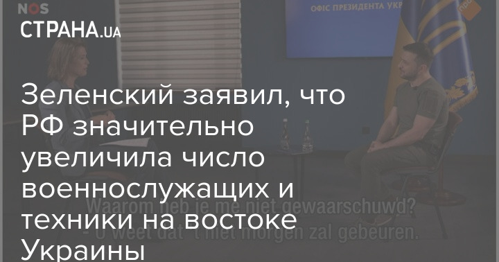 Президент Владимир Зеленский дал интервью крупнейшему нидерландскому телеканалу NOS, в котором, среди прочего, кратко оценил военную ситуацию на востоке Украины. По его словам, РФ увеличила число военной техники и людей на Донбассе.
