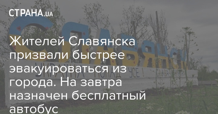 Власти Славянска призвали местных жителей быстрее эвакуироваться из города. Завтра, в воскресенье, 29 мая, желающим выехать предоставят бесплатный автобус. Первая точка прибытия – Днепр.