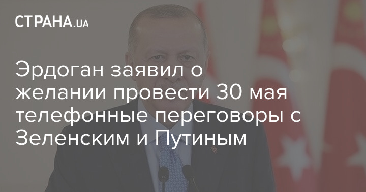 Президент Турции Реджеп Тайип Эрдоган заявил, что хочет уже завтра, то есть 30 мая, провести телефонные переговоры с Зеленским и Путиным.